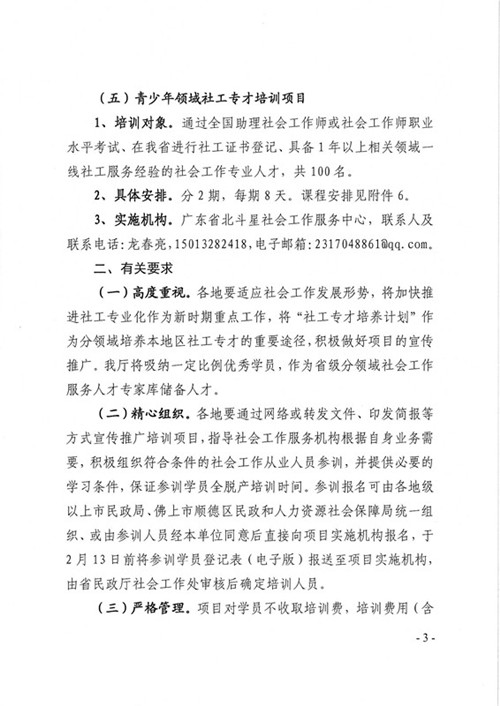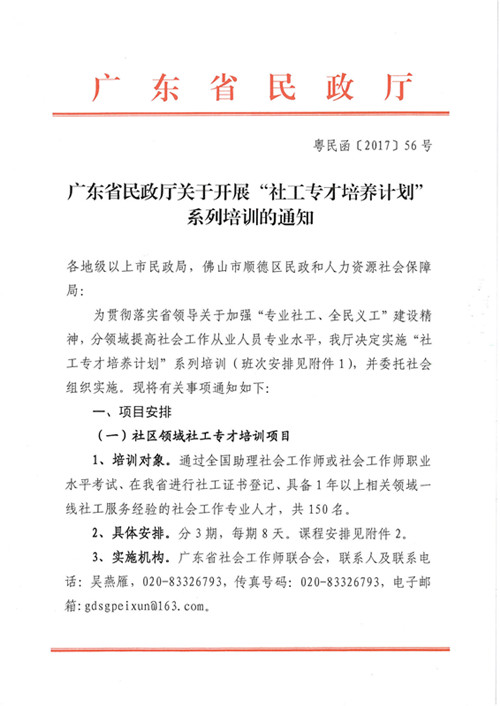 广东省民政厅关于开展“社工专才培养计划” 系列培训的通知